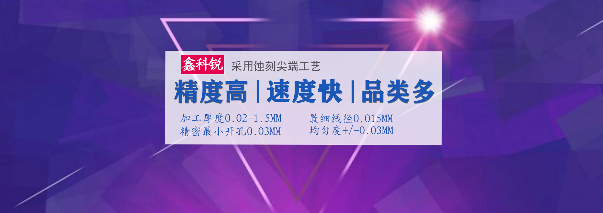 深圳市鑫科銳金屬制品有限公司是從事化學蝕刻,電蝕加工(EDM)的龍頭企業,蝕刻產品廣泛應用于:電子、精密五金、通訊、汽車工程、醫療、航空航天、石油化工、軍事、科研、精密工程應用元件等行業。
